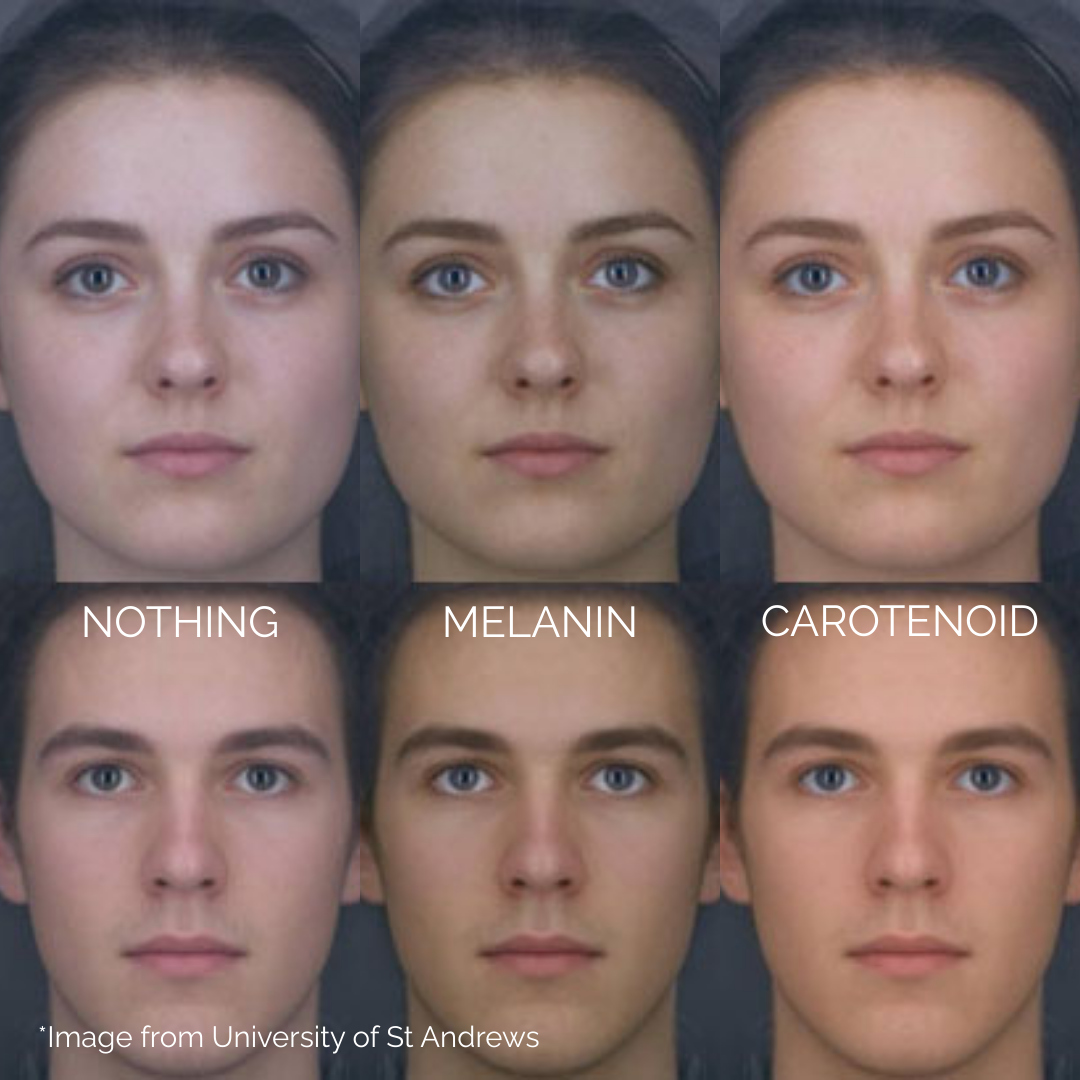 Beta-carotene has decades of proof behind it. It is the most commonly used carotenoid. Carrot pigment alone produces carrot-colored skin. We include it at a supporting dose, enough to build the golden base layer. Darker pigments, lycopene and astaxanthin, create the final natural, attractive tone.